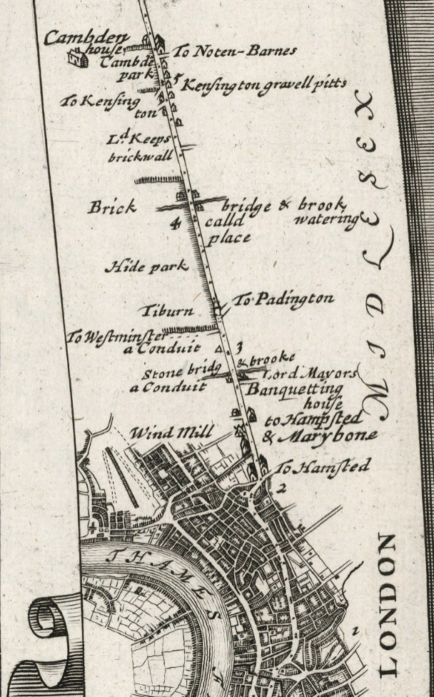 Screencap of John Ogilby, Road from London to Aberistwith. Plate I. London to Islip and Oxford. London 1675. David Rumsey Map Collection 9735.028.